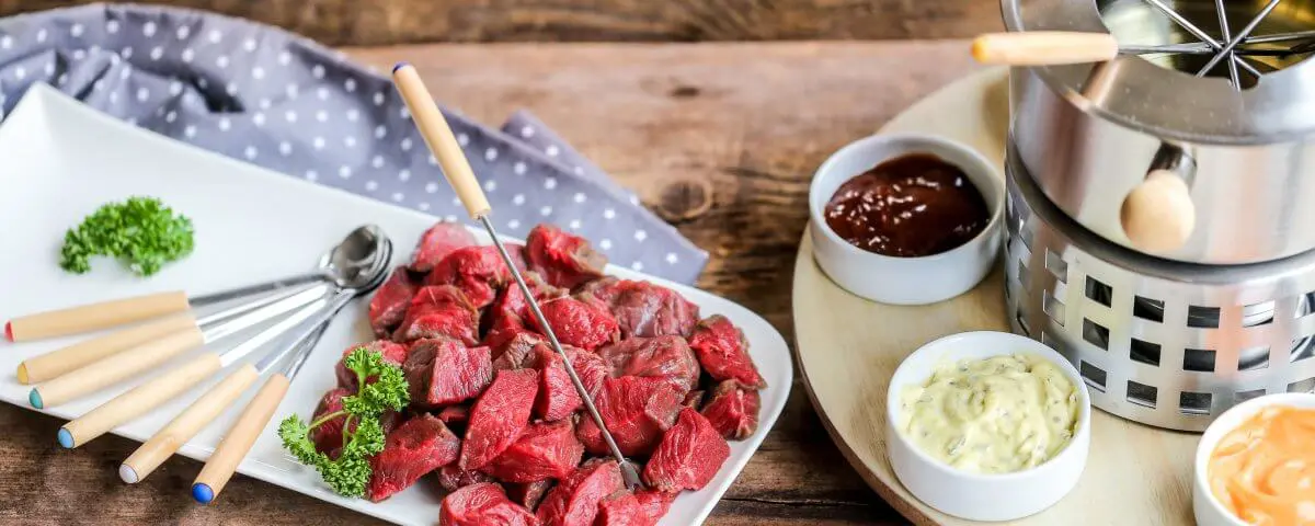 4. Les convives pourront piquer leurs morceaux de bœuf (avec un pic, ou une fourchette) et les faire cuire dans l’huile.